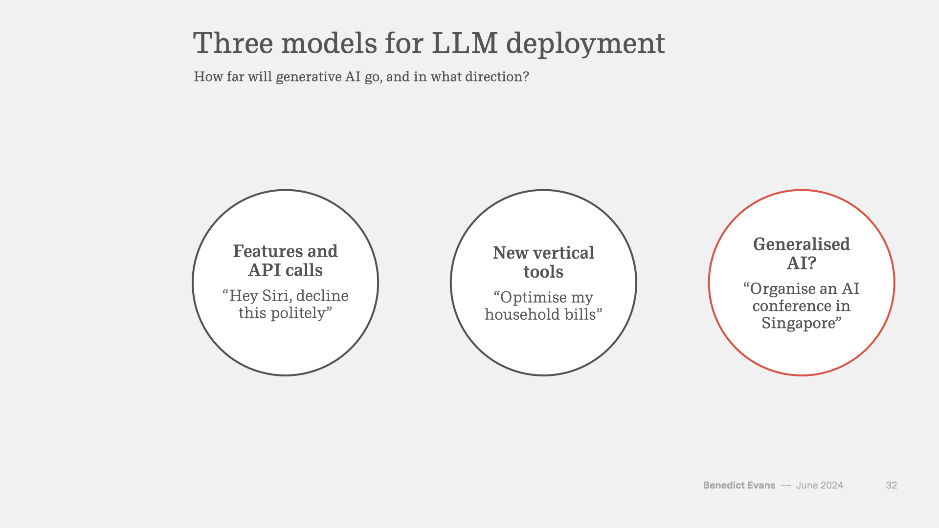 The most radical approach is the completely general purpose chatbot-as-product, the challenges with which I’ve just discussed. But there are also at least two other approaches.