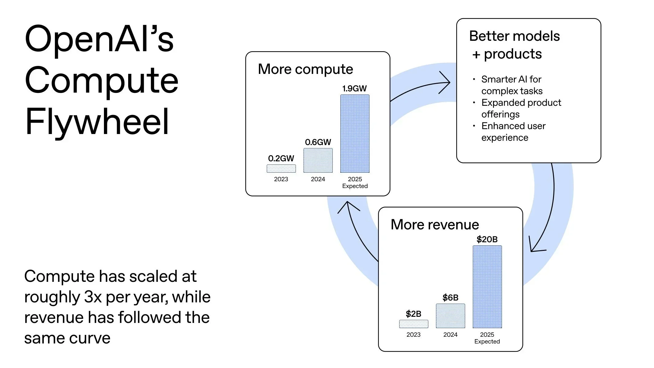 That is indeed how Windows or iOS worked. The trouble is, I really don't think that's the right analogy. I don't think OpenAI has any of this. It doesn’t have the kind of platform and ecosystem dynamics that Microsoft or Apple had, and that flywheel diagram doesn’t actually show a flywheel.