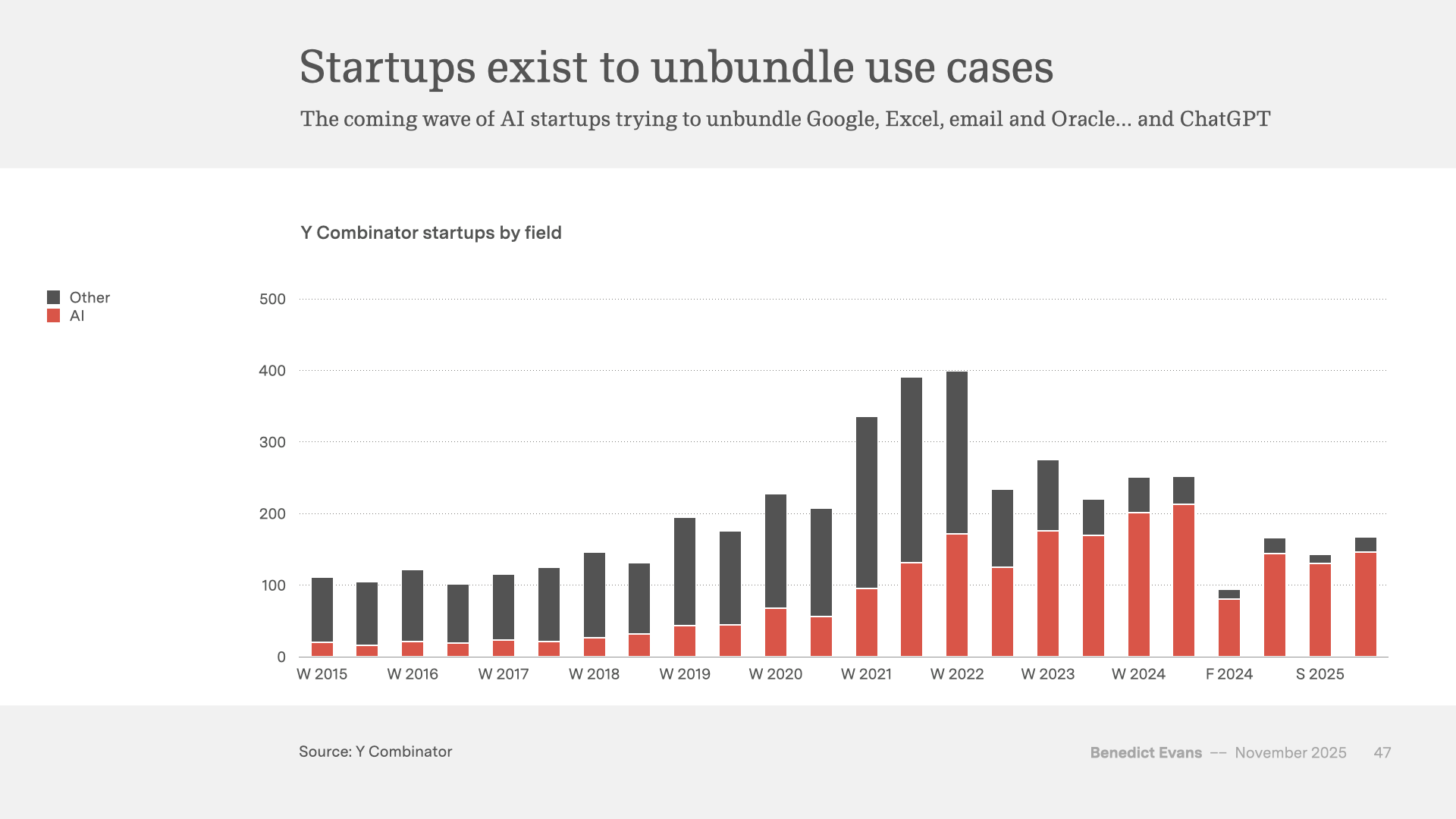 If the next step is those new experiences, who does that, and why would it be OpenAI? The entire tech industry is trying to invent the second step of generative AI experiences - how can you plan for it to be you? How do you compete with this chart - with every entrepreneur in Silicon Valley?