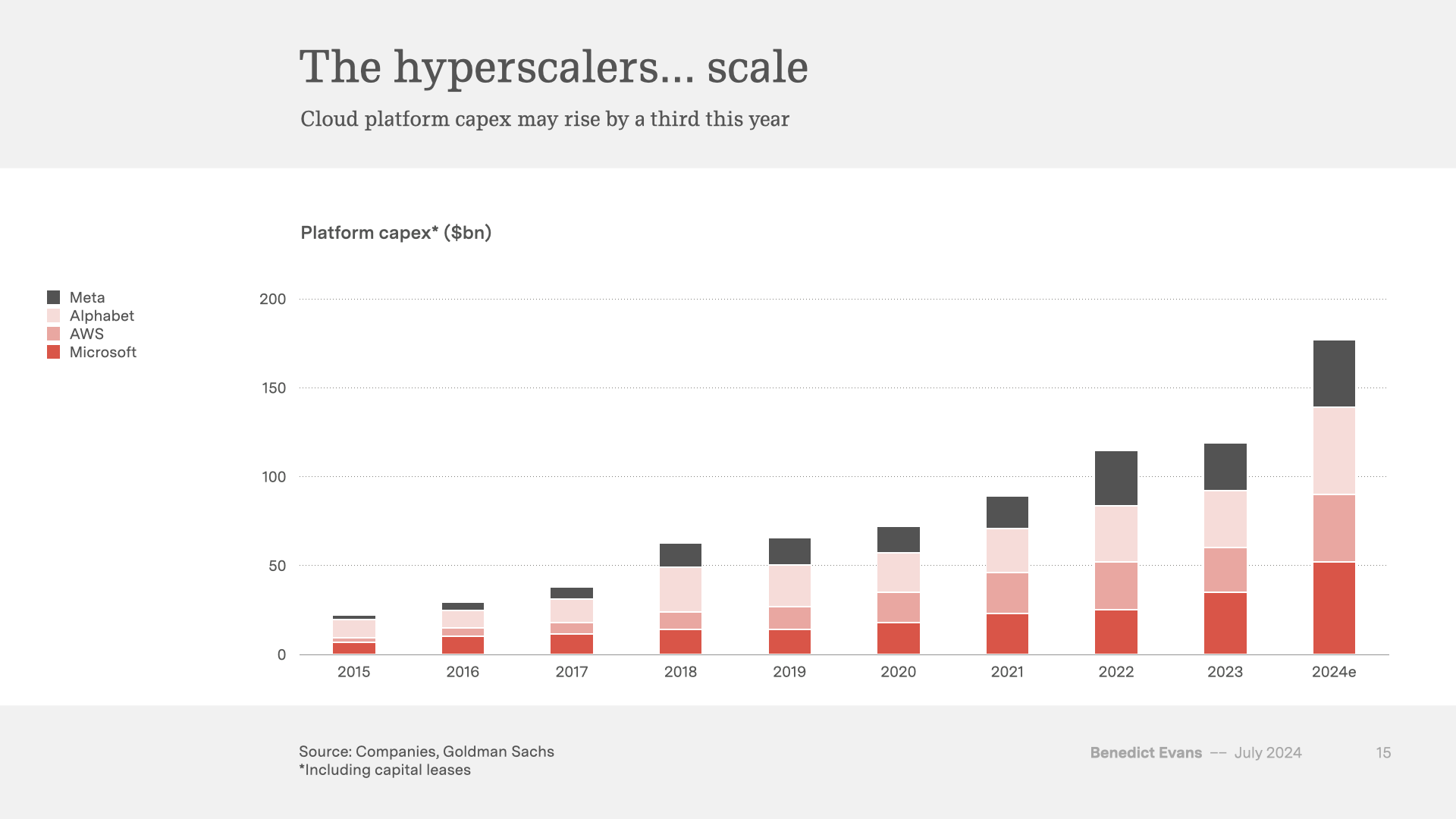 As a lot of people have now pointed out, all of that adds up to a stupefyingly large amount of capex (and a lot of other investment too) being pulled forward for a technology that’s mostly still only in the experimental budgets.