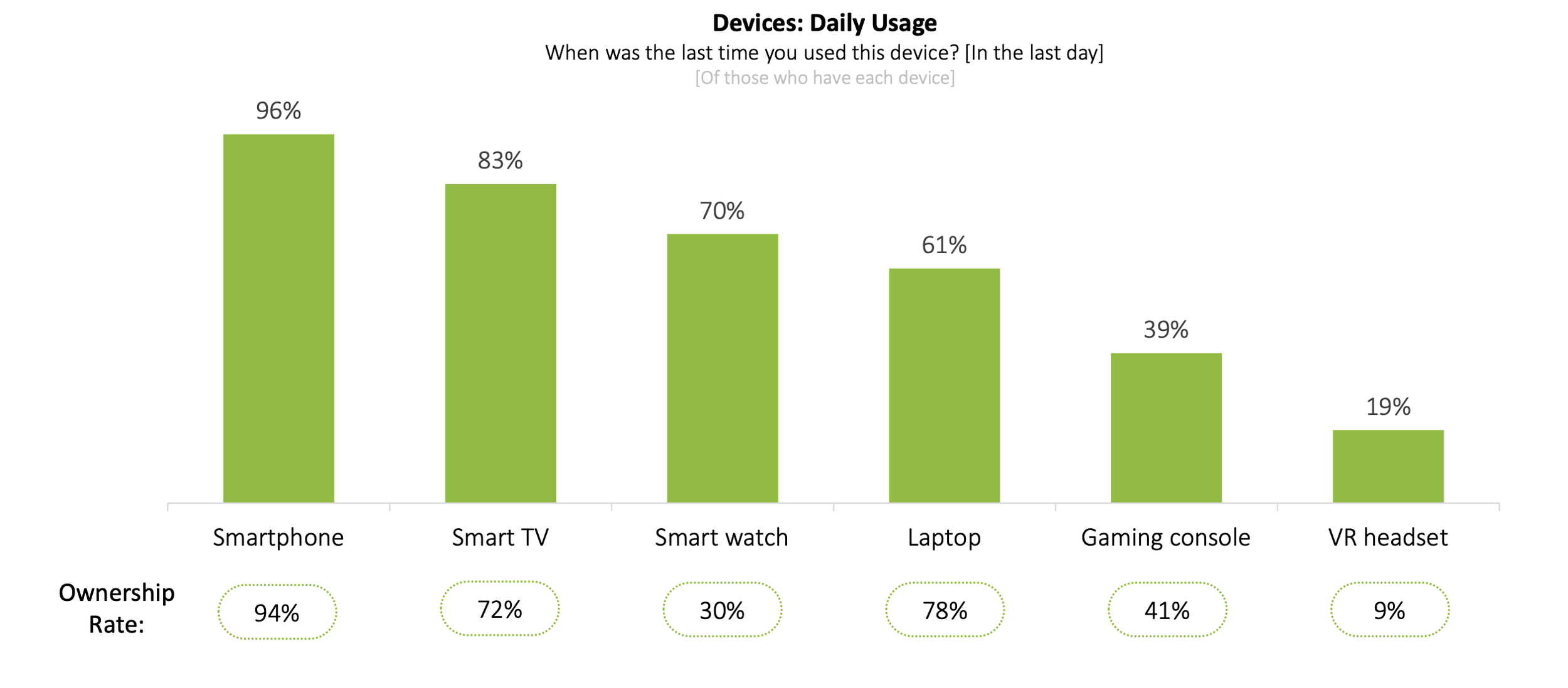 We should be careful of saying ‘no-one will do that’ - we all do things every day that ‘no-one would ever do.’ But equally, we should be careful of presuming that everyone will want this just because you do, or just because it’s really cool. Drones and 3D printers are really cool too, but most people don’t care, and even games consoles are far from universal - on that Deloitte data, perhaps 16% of people are daily users (Ofcom, the UK TMT regulator, has more detailed data for the UK here).